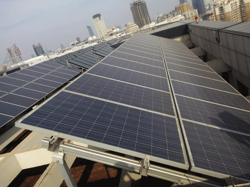 沈陽中鐵九局42kWp并網(wǎng)分布式電站工程項目采用高效多晶硅光伏組件180塊,總裝機容量為44.28kWp,系統(tǒng)年輸出電量約為53000 kWh。此項目在100多米的高空中與建筑完美結合,美觀、大方、實用。