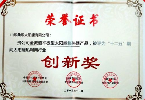 會(huì)議期間桑樂公司的“全流道平板集熱器”產(chǎn)品獲得頒發(fā)“中國太陽能熱利用行業(yè)產(chǎn)品創(chuàng)新獎(jiǎng)”,會(huì)上聘任了新一屆的“中國太陽能熱利用產(chǎn)業(yè)聯(lián)盟專家委員會(huì)”,共聘任委員會(huì)專家40名,其中聘任專家委員會(huì)主任1名,秘書長1名,副主任兼副秘書長1名,副主任委員4名。桑樂光熱技術(shù)部部長馬兵被聘任為中國太陽能熱利用行業(yè)協(xié)會(huì)和中國熱利用產(chǎn)業(yè)聯(lián)盟聘任為新一屆專家委員會(huì)委員。在副理事長高峰論壇上,桑樂集團(tuán)總工王斌首先非常感謝同行對(duì)桑樂的關(guān)心,并向業(yè)界同仁表示桑樂改制順利完成,新的桑樂重新歸來。