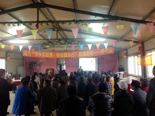 活動當天環(huán)保事業(yè)部王經(jīng)理負責凈水培訓,代理商負責收取定金,公司人員負責現(xiàn)場講解產(chǎn)品,有一些客戶需要測試生活用水的進行現(xiàn)場測試?;顒幼詈笪覀冞€收集了一部分臟水,以及農(nóng)藥倒入演示儀,通過凈化后,迎來了老百姓的一片掌聲,大家紛紛說桑樂的水機不但質(zhì)量過硬還價格便宜。
