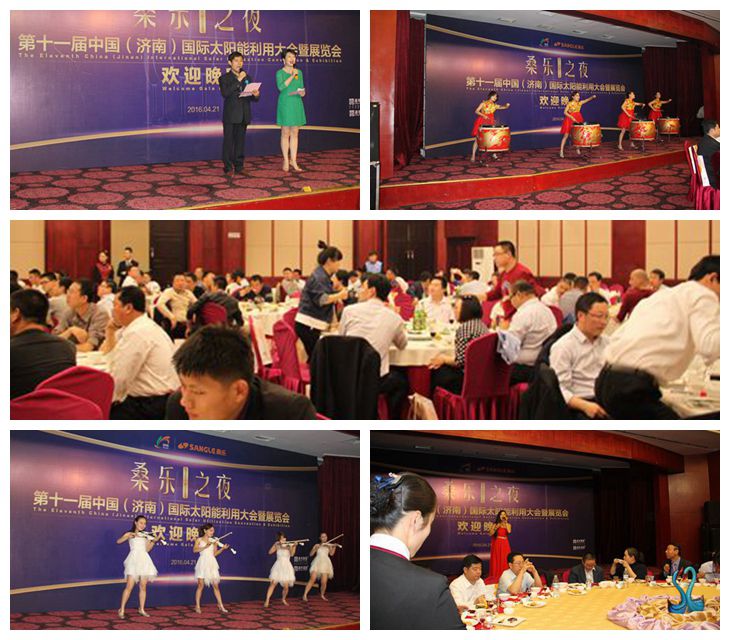 會展期間,以“桑樂之夜”為主題的太陽能利用大會答謝晚宴在舜耕山莊舉行,濟南市政府相關領導、太陽能行業(yè)協(xié)會領導、來自老拗的國際嘉賓以及200余客商參加了晚宴。
