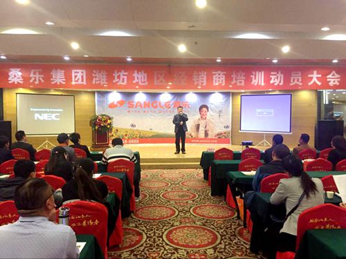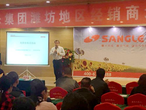 日前,桑樂山東濰坊地區(qū)經(jīng)銷商培訓(xùn)動員大會在濰坊圣基大酒店順利舉行,桑樂集團(tuán)公司副總馮磊、光伏事業(yè)部經(jīng)理楊桂紅蒞臨了本次會議,并做了重要講話和培訓(xùn)。