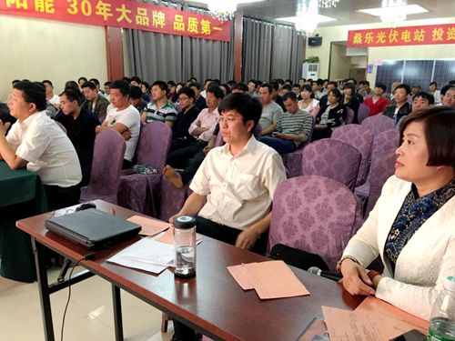 訂貨會上,商丘經(jīng)銷商王慶廣做了精彩分享,王經(jīng)理從商丘桑樂商貿(mào)有限公司的發(fā)展史講起,感謝集團(tuán)公司的大力支持,同時也十分感謝鄉(xiāng)鎮(zhèn)經(jīng)銷商的一直跟隨,相同的目標(biāo)讓大家越干越好,成績步步攀升。隨后,經(jīng)銷商業(yè)務(wù)經(jīng)理孫強(qiáng)做了精彩分享,孫強(qiáng)經(jīng)理從桑樂太陽能到桑樂的凈水設(shè)備,從桑樂光伏家庭電站到桑樂綠能家居,都做了深刻的講解,讓商丘鄉(xiāng)鎮(zhèn)經(jīng)銷商對公司有了全新的認(rèn)識。最后,桑樂集團(tuán)商丘區(qū)域經(jīng)理李高峰宣講了“紅五月”訂貨政策,以及新產(chǎn)品的發(fā)布,給大家?guī)砹撕艽蟮男判?。通過李經(jīng)理的分享,經(jīng)銷商看到了桑樂公司的新面貌、新形象、新戰(zhàn)略、新步伐,大家重新燃起了剛開始做桑樂的那股激情,共同期待見證桑樂下一個30年的輝煌!在商丘經(jīng)銷商的共同努力下,訂貨會圓滿成功。