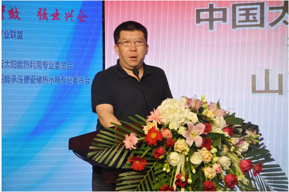 平板太陽能熱利用專業(yè)委員會主任單位、山東桑樂太陽能有限公司副總經(jīng)理馮磊致辭