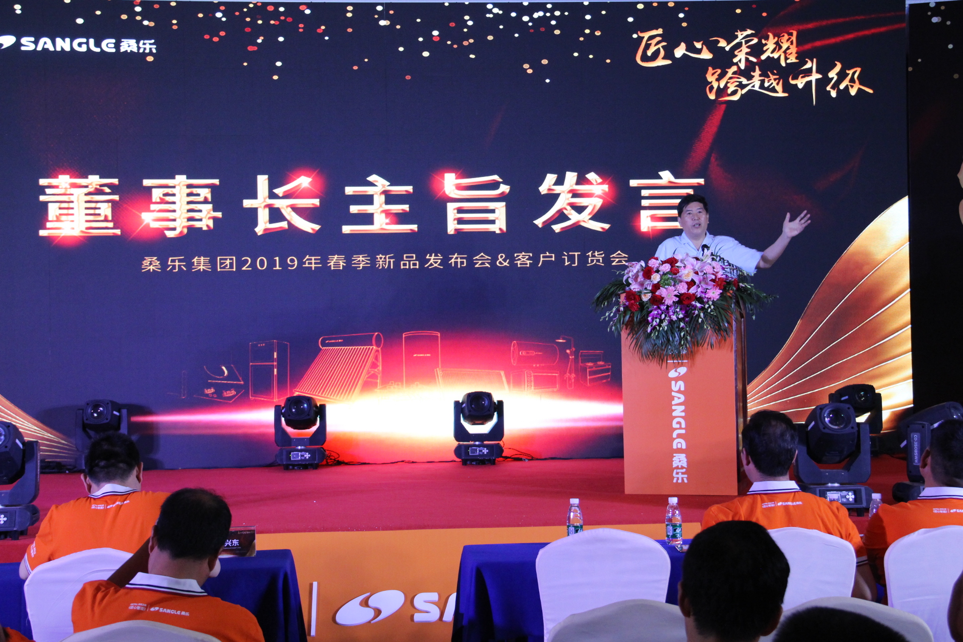 董事長關于桑樂品牌升級戰(zhàn)略和共創(chuàng)財富新時代的發(fā)言受到了全體桑樂家人們的一致贊同和掌聲。