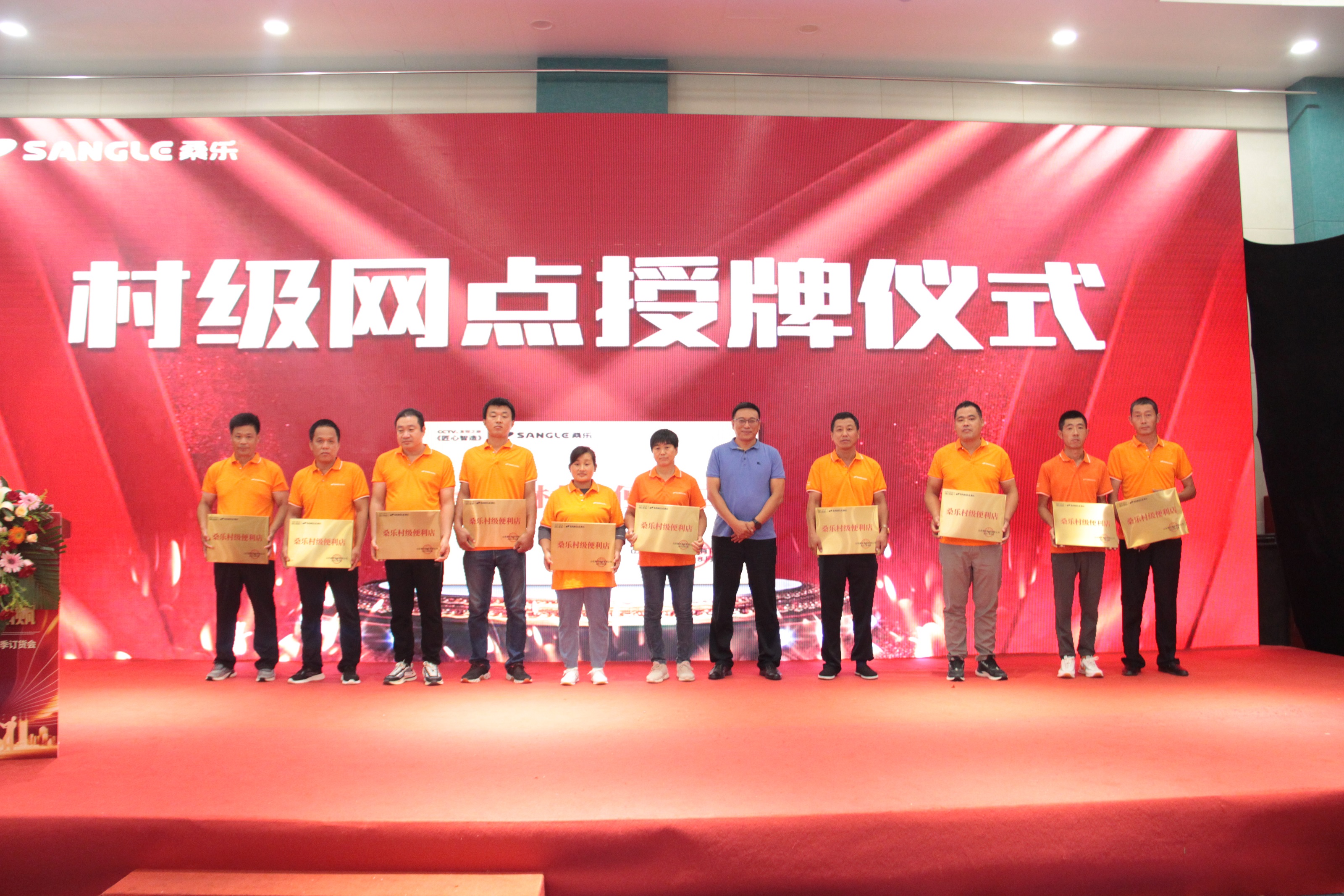 為激勵鄉(xiāng)鎮(zhèn)經(jīng)銷商,立足鄉(xiāng)鎮(zhèn)市場,本次會議還為有突出貢獻的經(jīng)銷商授予“桑樂村級便利店”獎牌,集團常務(wù)副總經(jīng)理馮磊,副總經(jīng)理、總廠廠長趙中強,副總經(jīng)理張興東,副總經(jīng)理、總會計師周鋒上臺為百名山東省內(nèi)優(yōu)秀經(jīng)銷商授牌。隨著國家對鄉(xiāng)村振興戰(zhàn)略的工作開展,構(gòu)建桑樂村級便利店,更是成為了桑樂強而有力的助推器。