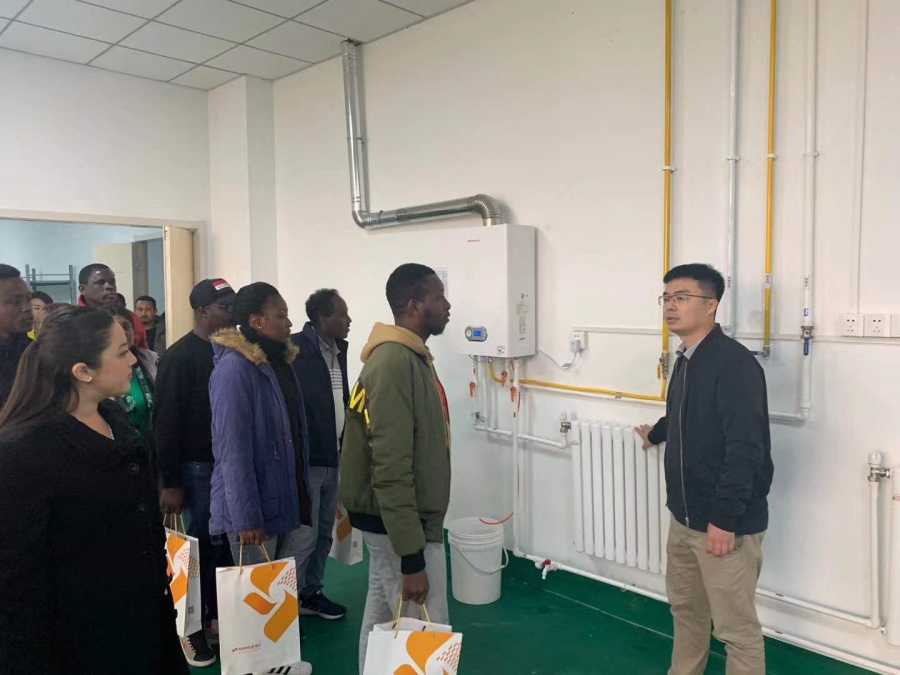 The visiting overseas students first understood the company's situation through the introduction of the company's personnel; then, under the leadership of the company and workshop technicians, the visiting guests visited the product exhibition hall, vacuum tube, flat plate, photovoltaic, wall-hanging gas-boiler and other product production lines.