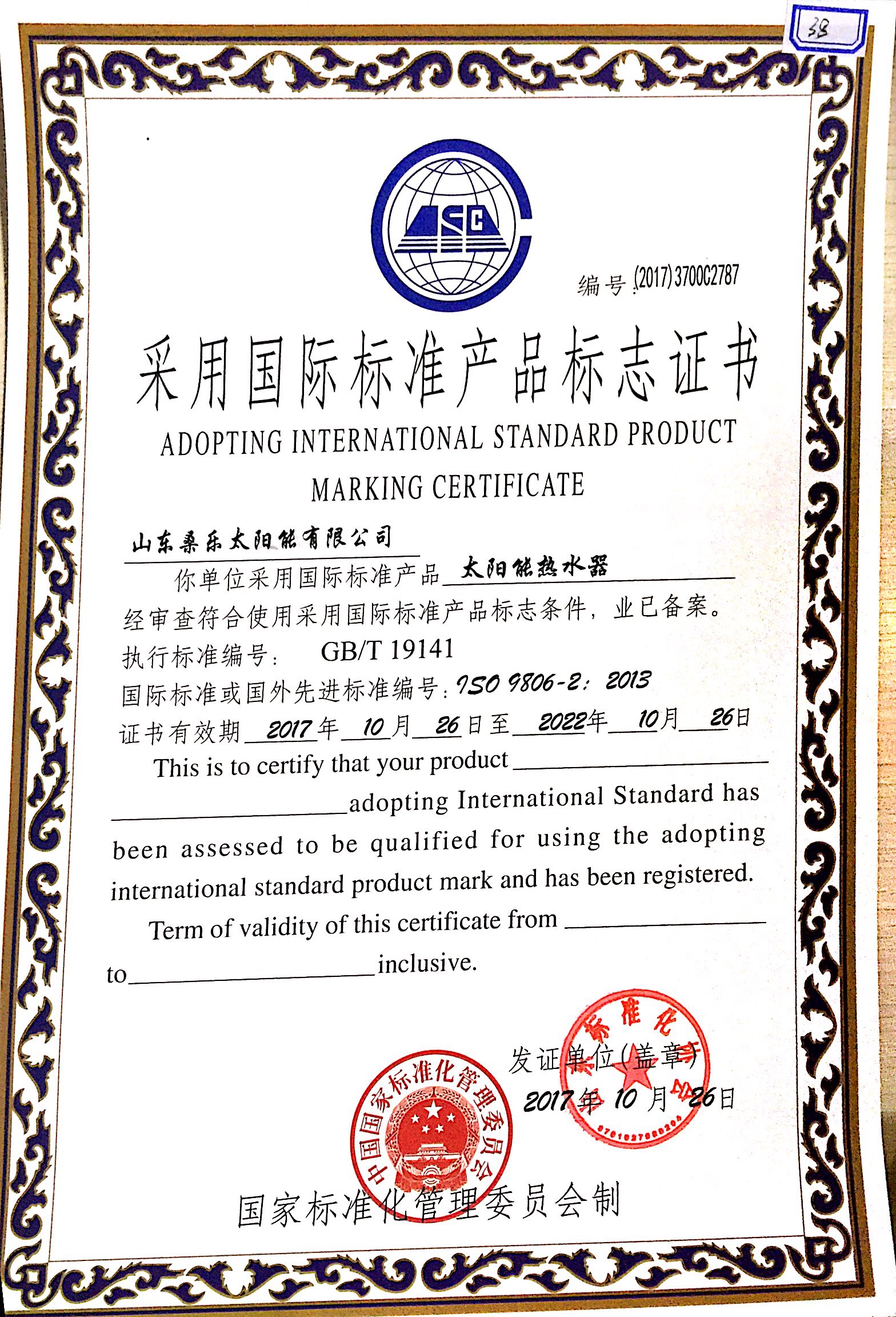 采用國際標(biāo)準(zhǔn)產(chǎn)品標(biāo)志證書