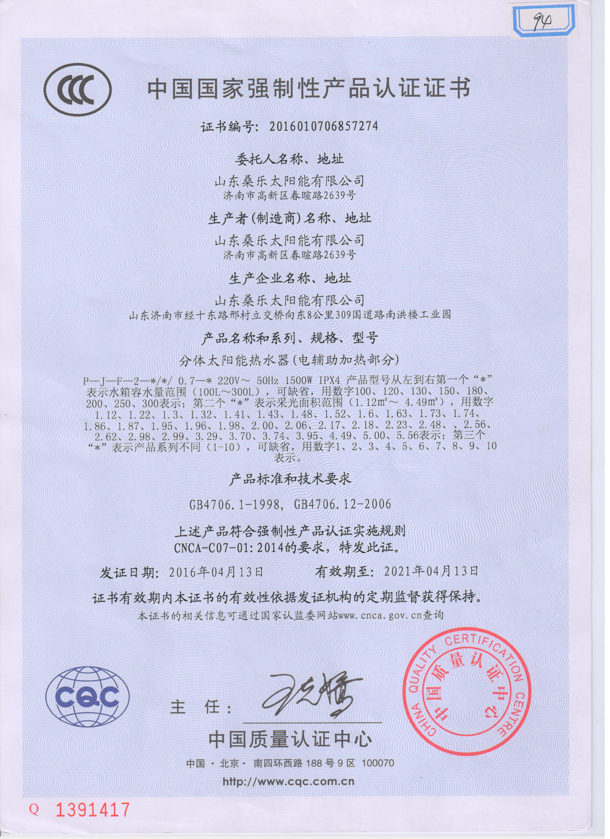分體3C國家強(qiáng)制產(chǎn)品認(rèn)證證書