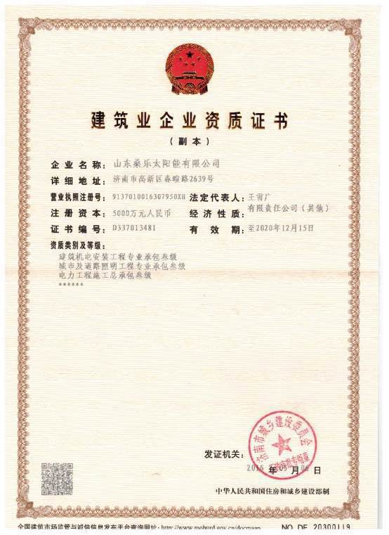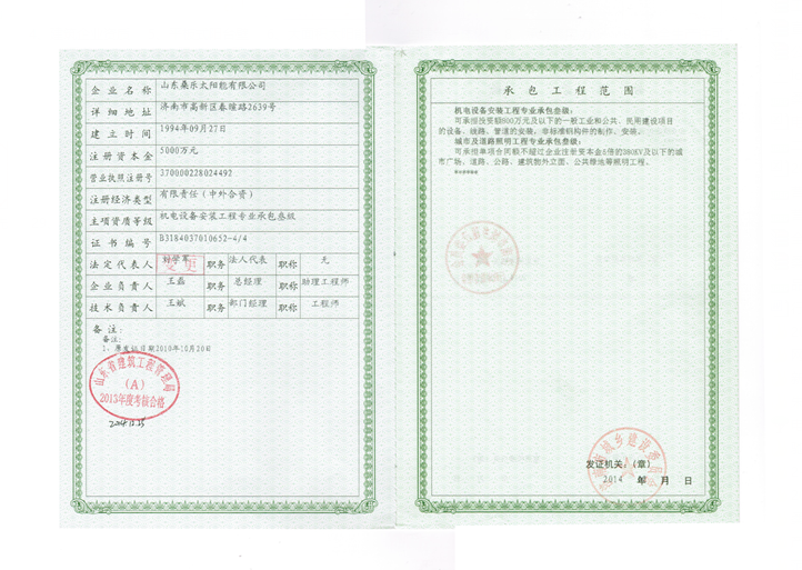 太陽能熱利用工程設(shè)計、施工資質(zhì)A級證書