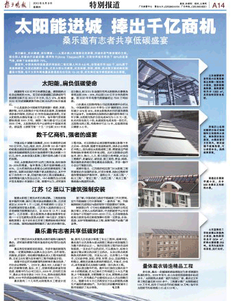 《揚(yáng)子晚報(bào)》對(duì)我公司進(jìn)軍太陽(yáng)能熱利用工程市場(chǎng)進(jìn)行報(bào)道