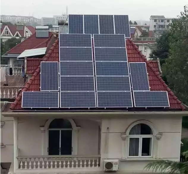 光伏居民發(fā)電系統(tǒng)由:支架、太陽能組件、并網(wǎng)逆變器、電源箱、光伏電表組成以下圖例