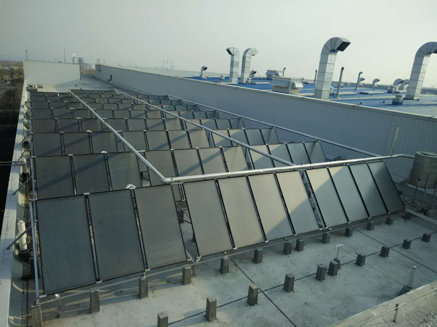 黃島上汽新能源客車公司48噸超純剛全流道集熱器熱水工程