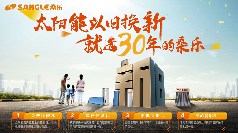 2018年新春伊始,桑樂集團便緊抓這一黃金時段,緊鑼密鼓地布局新一輪的市場攻勢;在集團王董事長“太陽能以舊換新,就選30年的桑樂”的號召下,在集團各區(qū)域分公司的鼎力配合下,目前桑樂太陽能“以舊換新“活動在全國范圍內(nèi)火熱進行中……