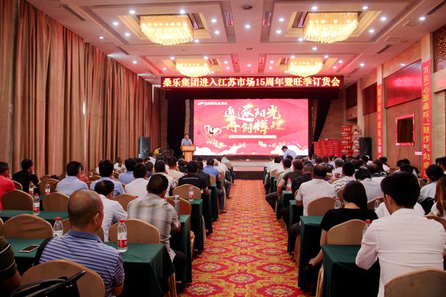 6月15日,桑樂集團江蘇分公司旺季營銷會議在濟南泉盈大酒店隆重召開,桑樂集團領(lǐng)導(dǎo)層、江蘇分公司銷售人員、江蘇縣鄉(xiāng)核心經(jīng)銷商200多人齊聚一堂,喜迎桑樂進入江蘇市場15周年。本次會議贏得了經(jīng)銷商的大力支持,經(jīng)銷商積極打款,大會完美落幕!