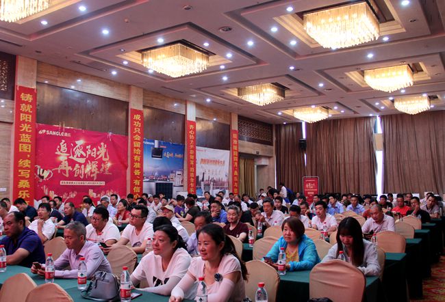 集團王雪廣董事長蒞臨會議現(xiàn)場并發(fā)表主旨演講,首先,他代表桑樂集團對江蘇經(jīng)銷商的到來表示熱烈歡迎,感謝桑樂家人對公司的信任和支持。董事長從自身經(jīng)商經(jīng)歷講起,講到做任何事情都要堅定信心,執(zhí)著,忠誠自己的事業(yè),以平穩(wěn)的心態(tài)發(fā)展自己的事業(yè),財富的積累要堅持和執(zhí)著。希望大家眾志成城,鑄就江蘇桑樂新輝煌!桑樂的優(yōu)勢在于技術(shù)優(yōu)勢,打造桑樂“環(huán)保、節(jié)能、綠色”的產(chǎn)業(yè)布局,做好終端市場。追隨桑樂,跟著政策走,選擇桑樂就是選擇成功。江蘇市場近年來穩(wěn)步增長,公司將會做好產(chǎn)品技術(shù)和售后服務(wù)支持,助力2018江蘇市場再創(chuàng)輝煌!