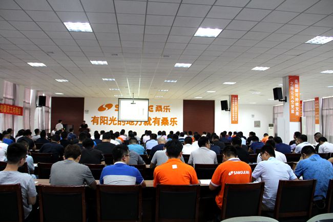 培訓(xùn)會議上,桑樂集團(tuán)光熱工程、光伏、空氣能、凈水、廚衛(wèi)等領(lǐng)域的專業(yè)技術(shù)人員于洪文、孫向東、丁海學(xué)、梁慶彬、唐強(qiáng)分別進(jìn)行了培訓(xùn)分享。他們從空氣能產(chǎn)品知識、光伏電站工作原理、運(yùn)營維護(hù),煙機(jī)灶具、電熱水器構(gòu)造安裝知識,凈水機(jī)維護(hù)保養(yǎng)、工程招投標(biāo)基礎(chǔ)等多個方面進(jìn)行了詳細(xì)的講解,讓大家深刻領(lǐng)會到產(chǎn)品使用、客戶購買、售后安裝過程中涉及到的專業(yè)技術(shù)。所有受訓(xùn)人員對集團(tuán)產(chǎn)品加強(qiáng)了認(rèn)知、認(rèn)同,對客戶消費(fèi)目標(biāo)有了更進(jìn)一步的了解、定位。