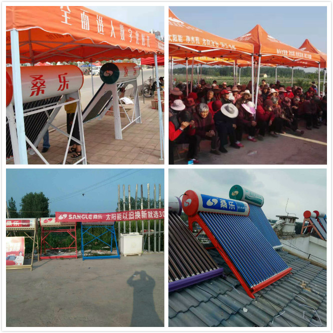 苗書賓的另一張經(jīng)營王牌是促銷活動。近年來,苗書賓一直跟著公司的營銷思路走,帶領(lǐng)鄉(xiāng)鎮(zhèn)、村級大力開展各項營銷活動。小區(qū)展銷、以舊換新、上門推銷等都取得了不錯的成績。其中以舊換新尤為突出,共計10余場。今年7月份,迎來太陽能銷售市場旺季,苗書賓親自帶領(lǐng)經(jīng)銷商組建檢修隊伍,挨家挨戶上門巡檢,對于有明顯質(zhì)量問題,或者使用超過10年以上有安全隱患等舊機器建議用戶換新機。并在鎮(zhèn)上、門店等掛條幅、布置宣傳物料,為以舊換新宣傳造勢。田橋鎮(zhèn)僅在7月份以舊換新將近賣了50臺,創(chuàng)歷史新高。