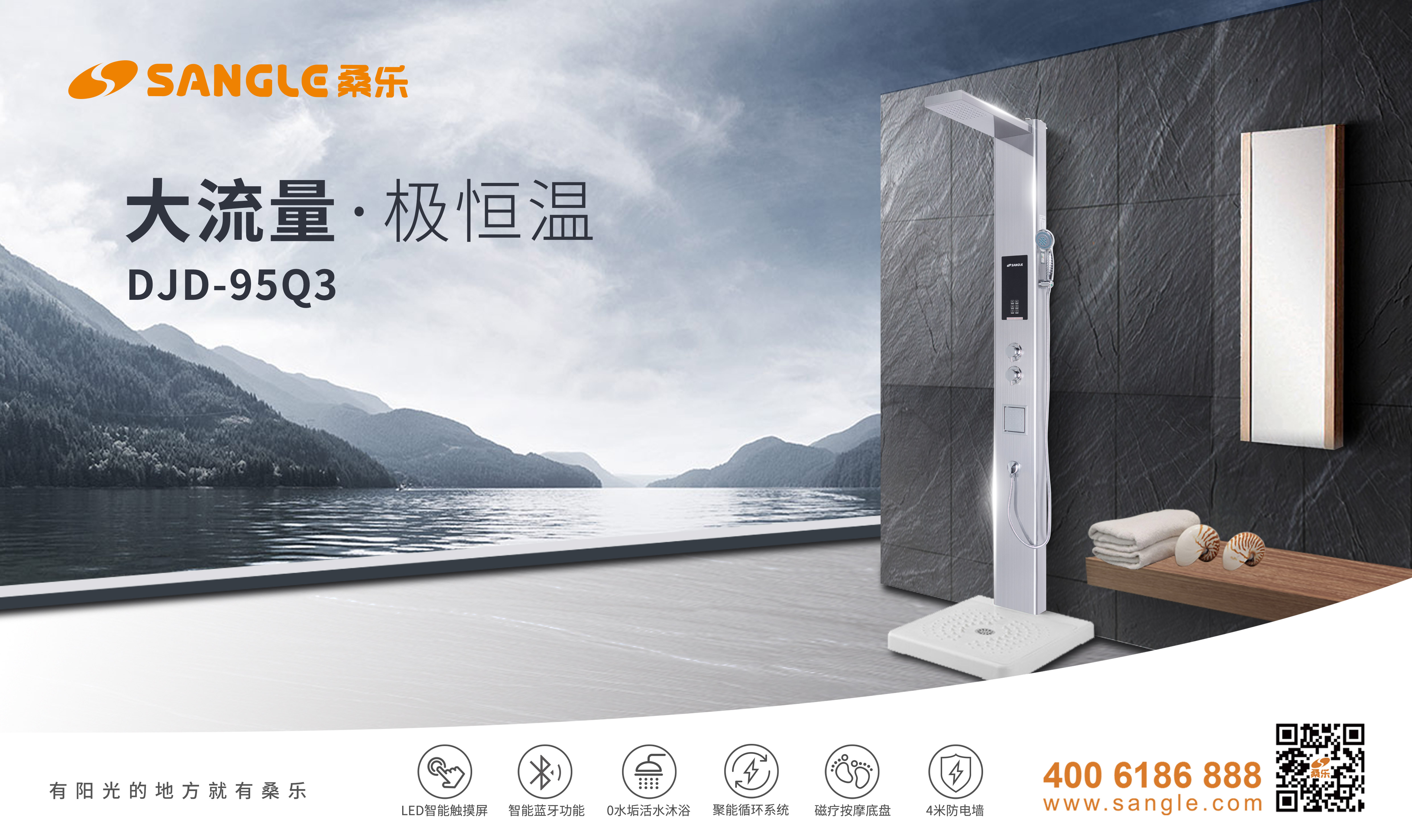 桑樂集團2019年春季新品集成式熱水器,將創(chuàng)新技術(shù)與舒適體驗完美結(jié)合,特來幫您解決這個難題。其中以DJD-95Q3為例,這款產(chǎn)品因為沒有傳統(tǒng)熱水器的儲水容器,機身只有22cm,極大的縮減了占地面積,只要一個淋浴的地方足矣,而且整機采用SUS304不銹鋼一體拉伸,盡顯奢華時尚浴室。當(dāng)然作為一款熱水器最重要的還是其實用性,這款產(chǎn)品因內(nèi)膽容量小、預(yù)熱時間短,所以沒有長時間預(yù)熱而導(dǎo)致的熱能量散失,即開即用的同時避免了能源浪費,真正做到了節(jié)能、省電、省水,這也是被眾多消費者選擇的主要原因。同時它還采用了ECO高頻振蕩導(dǎo)熱技術(shù),在振蕩過程中消除水垢,實現(xiàn)無水垢環(huán)保運行,保障熱效率持續(xù)穩(wěn)定不衰減。除此之外該產(chǎn)品還支持多種出水模式,頂噴SPA、瀑布SPA、手持花灑、側(cè)噴SPA隨意切換,只愿做您家里的免費按摩師,單獨配備的磁療按摩底盤,更是讓用戶在沐浴的同時刺激足部穴位反射點,對全身器官的反射穴位進行磁療按摩,無疑是養(yǎng)生沐浴之首選。