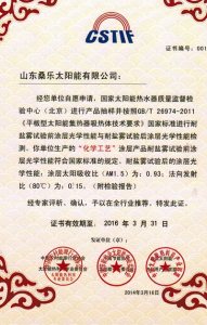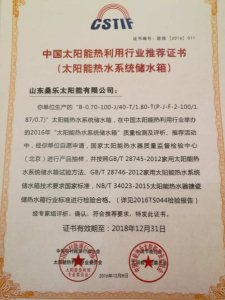 中國(guó)太陽(yáng)能熱利用行業(yè)推薦證書(太陽(yáng)能熱水系統(tǒng)儲(chǔ)水箱)