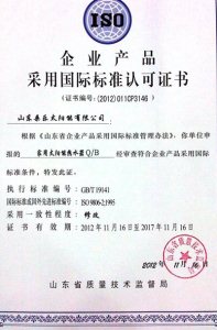 企業(yè)產(chǎn)品采用國(guó)際標(biāo)準(zhǔn)認(rèn)可證書