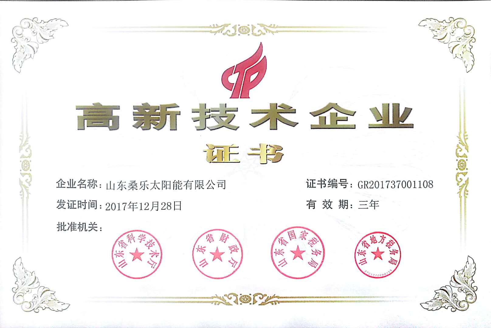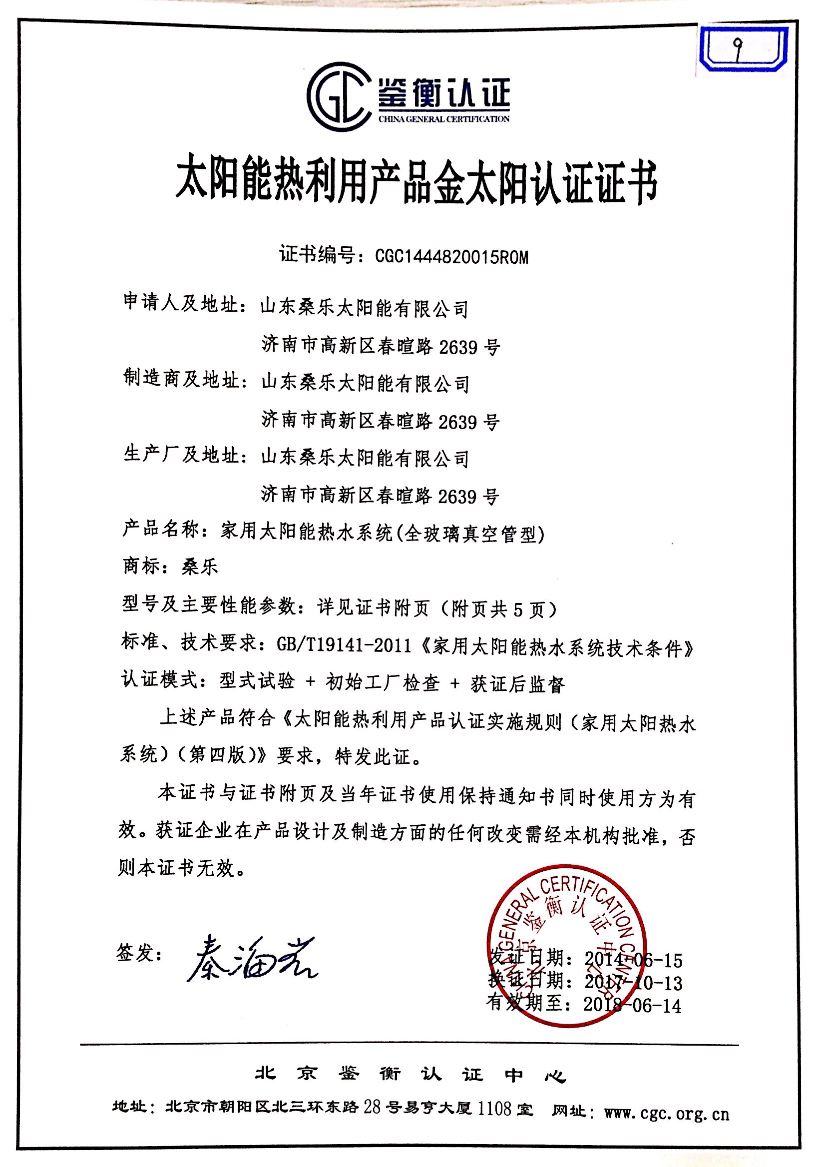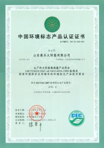 太陽(yáng)能熱利用產(chǎn)品金太陽(yáng)認(rèn)證證書