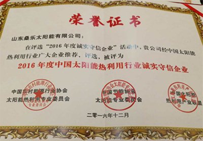 2016年度中國(guó)太陽(yáng)能熱利用行業(yè)誠(chéng)實(shí)守信企業(yè)